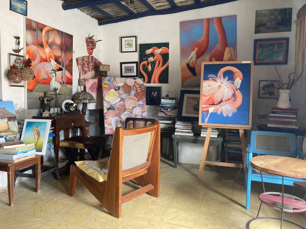 A simple house with colourful murals of birds painted on the front wall. Open on a Monday morning, but not the type of place that keeps regular hours or even acknowledges weekends and weekdays. Not a novel in sight inside, but nearly every flat surface covered with bird books in multiple languages, if that’s your cup of tea. I admit that it’s not mine, slightly ashamed of my ignorance. Embracing birding (as it is called, apparently) as a hobby is an admission to middle age that one does not easily make.